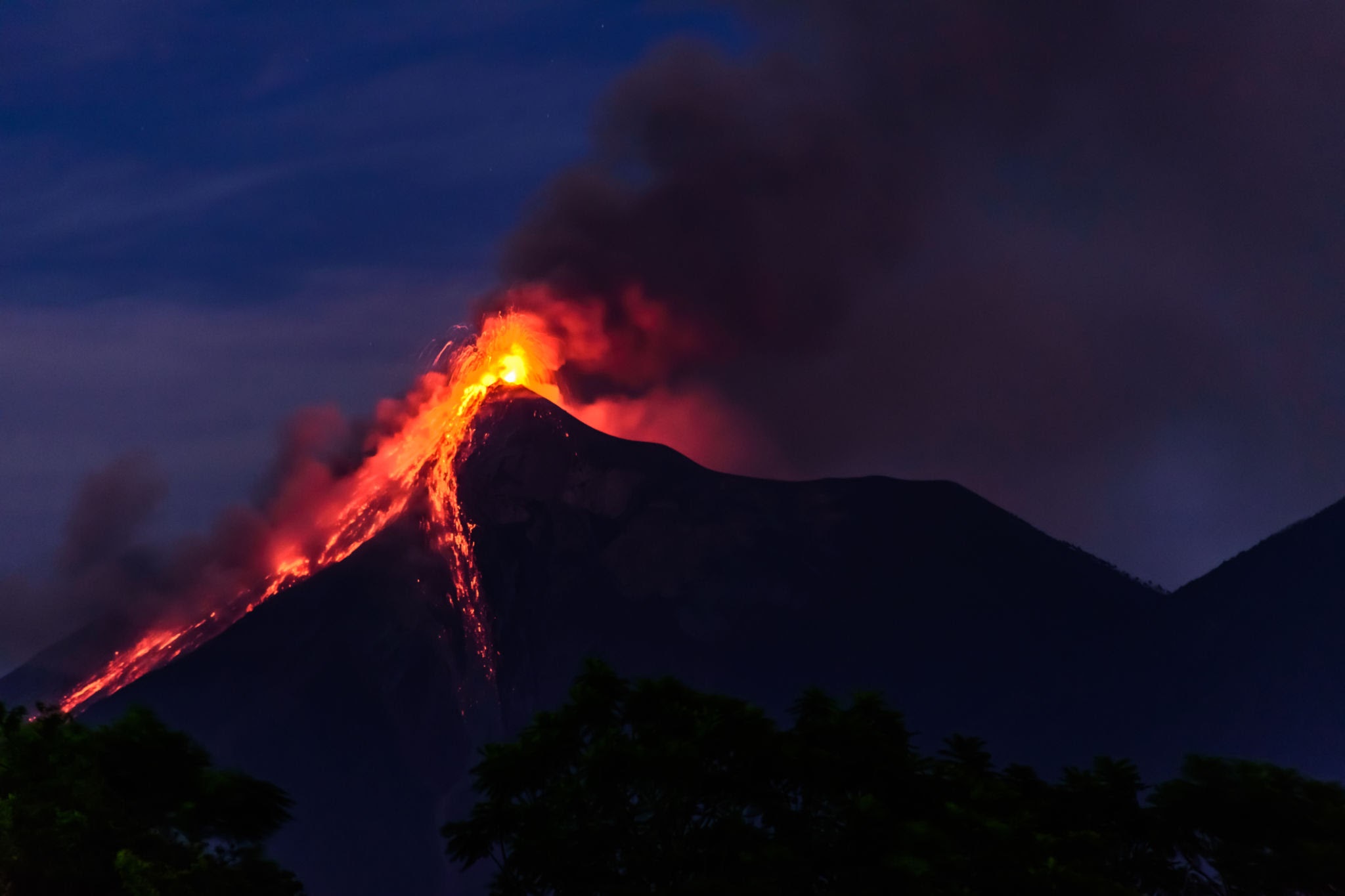 El volcán de Fuego es a lo que se le conoce como un estratovolcán situado entre los departamentos de Sacatepéquez, Escuintla y Chimaltenango, al centro-sur de Guatemala. El volcán de Fuego es uno de los más impresionantes de Centroamérica. Sus erupciones son violentas, y probablemente es el volcán más activo desde la Conquista, a tal extremo que se afirma que el conquistador Pedro de Alvarado pudo verlo en erupción en el año de 1524, según el mismo lo reportó en epístolas. Su nombre indígena es "Chi'gag", que se traduciría del idioma cakchiquel al español como "donde está el fuego". El volcán de Fuego tiene una altura de 3763 msnm. Prácticamente se encuentra descubierto de vegetación más arriba de los 1300 metros, donde básicamente solo puede encontrarse lava. El volcán de Fuego tiene la forma de un cono que se alarga considerablemente hacia el sur, formando el pie de monte hacia la costa sur. Debajo de él se constituye una meseta oro-gráfica de múltiples características geológicas.